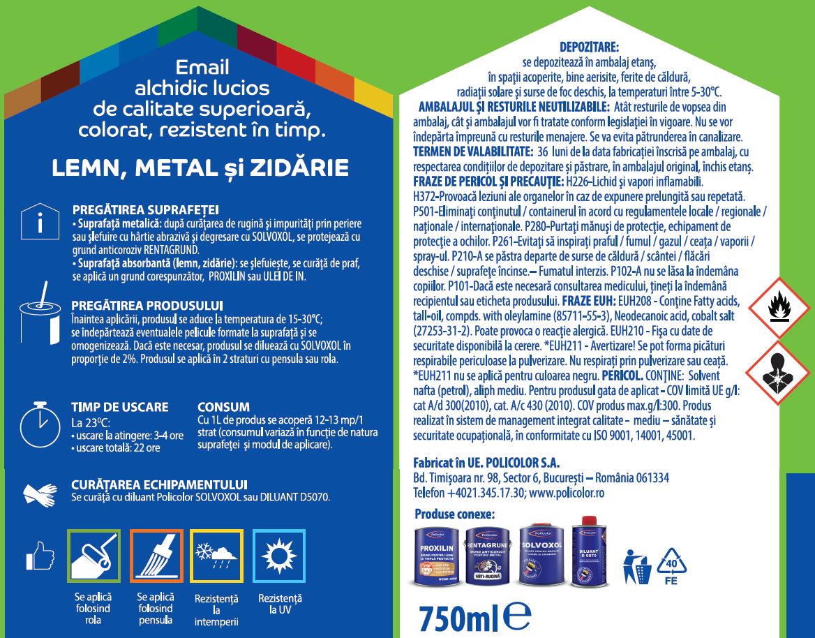 | Timp de uscare | to the touch: 4 hours, between layers 12 hours, completely in 22 hours |