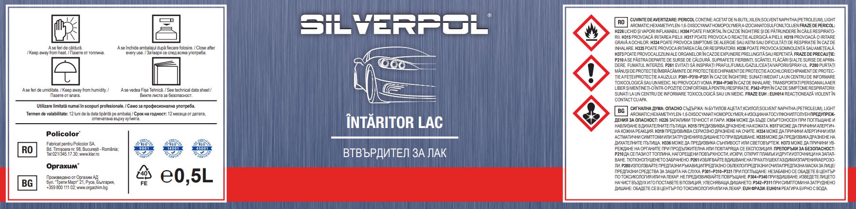 – Gives the varnish an easy application and a good stretch of the film;– It is applied in a ratio of 100% volume Silverpol varnish to 50% volume Silverpol varnish hardener to a maximum of 5% Silverpol normal thinner.