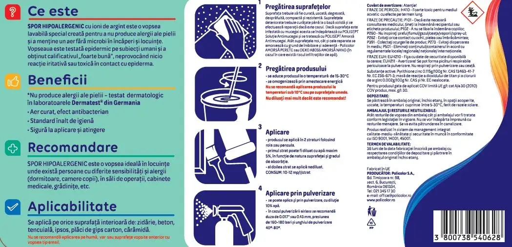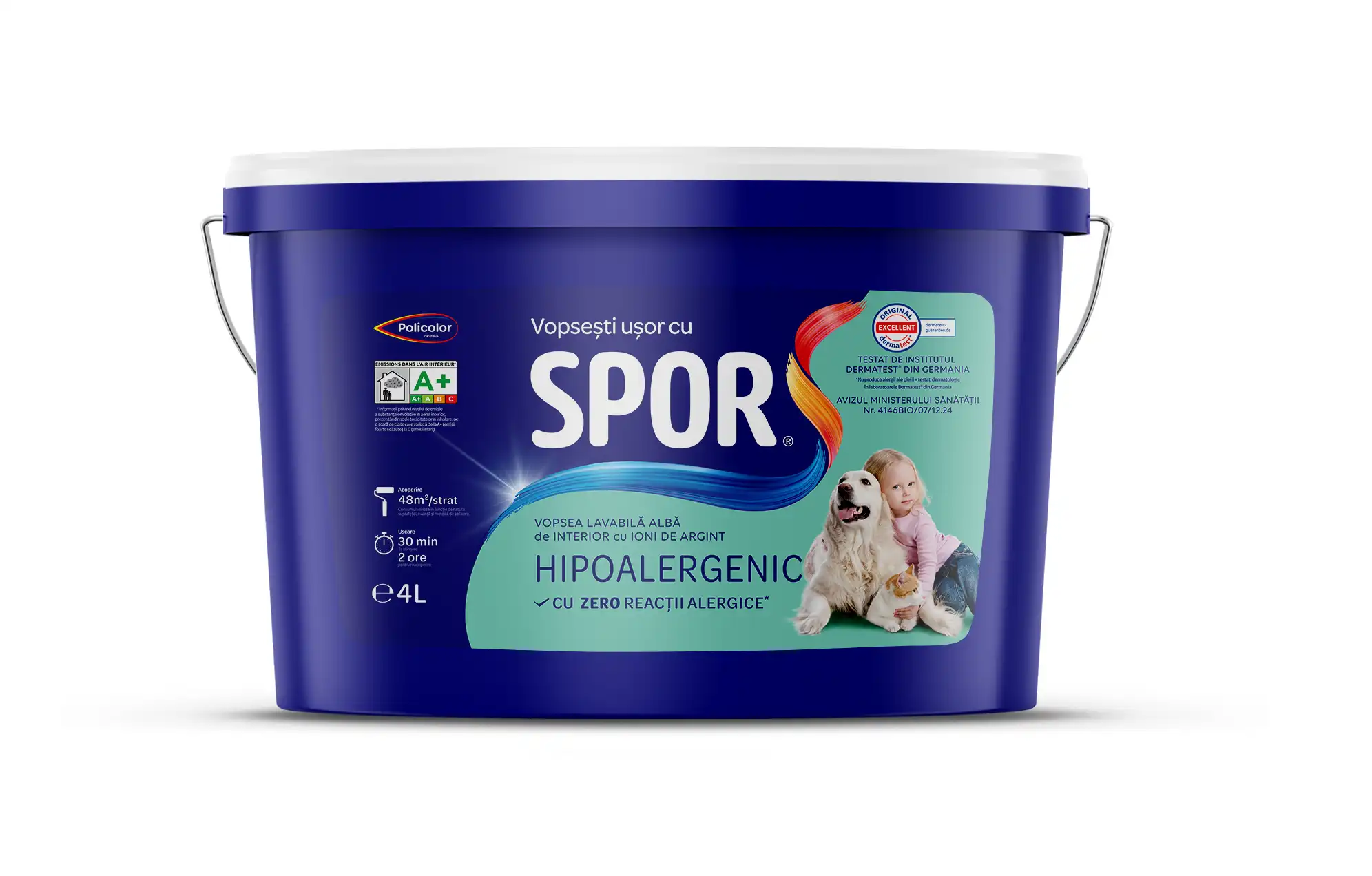 SPOR Hipoalergenic cu ioni de argint este o vopsea lavabilă special creată pentru a nu produce alergii ale pielii și a menține un aer fără microbi în încăperi și locuințe. Vopseaua este testată epidermic pe subiecți umani și a obținut calificativul „foarte bună”, neprovocând nicio reacție iritativă sau toxică în contact cu epiderma.